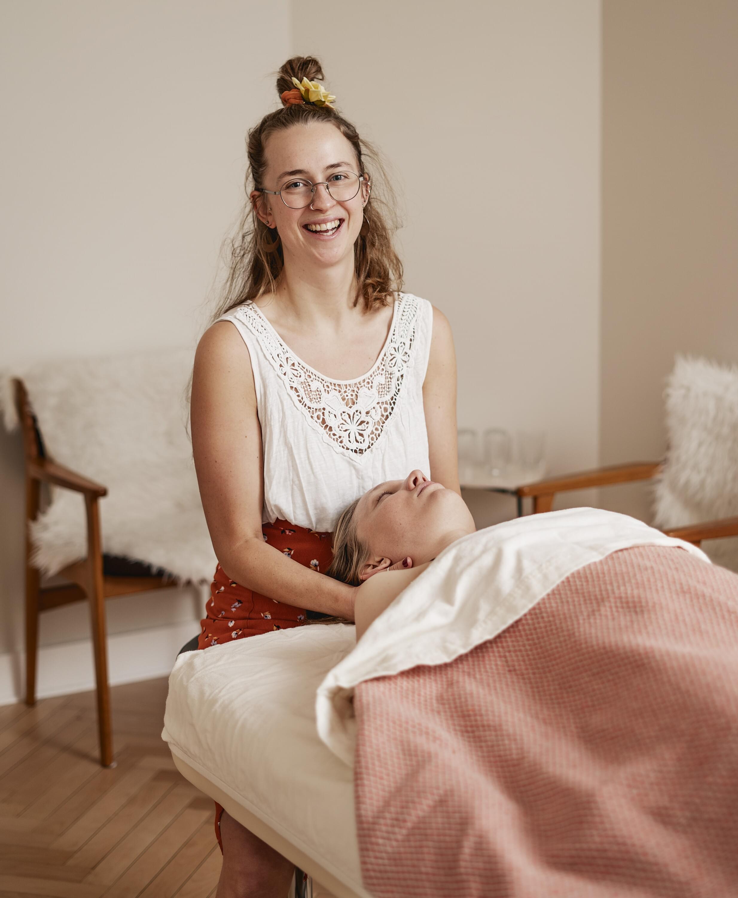 "Camilla formår at skabe et trygt og varmt behandlingsrum, hvor man kan give slip og slappe af. Hun er enormt rummelig og du kan være lige præcis som du, med alt hvad det indebærer. Camilla er fantastisk til at fornemme mine behov, min krop, og de bitte små signaler den sender. Vi havde nogle gode samtaler om, hvad der skete undervejs. Det gav mig en bedre forståelse for mig selv. Hendes rolige og kærlige energi smitter af og du går derfra med ro og mildhed."